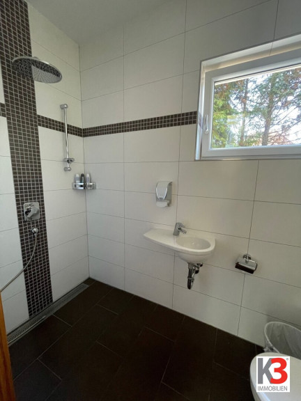 Vom PKW Stellplatz (in einem umzäunten Privatareal), wo sich auch eine E-Ladesäule befindet, gelangen sie über einen eigenen Zugang / Treppe in das 1.OG wo sich das "BÜRO & WOHNEN" befindet.