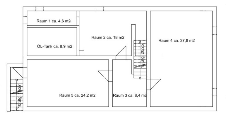 Das Gebäude ist großteils unterkellert. Der Zugang ist sowohl vom Vorraum als auch direkt vom Garten möglich. Im Keller befindet sich neben den üblichen Lager- und Technikräumen auch eine Sauna.