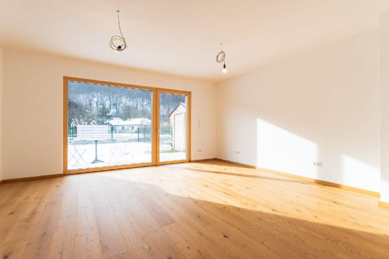 Im Herzen des Wienerwalds, eingebettet in die idyllische Landschaft des Helenentals im Bezirk Baden, entsteht das ca. 137m² Niedrigstenergie-Reihenhaus, das moderne Architektur mit einem nachhaltigen Wohnkonzept verbindet. Hochwertige ökologische Ausstattung, lichtdurchflutete Räume und ein intelligent konzipierter Grundriss schaffen ein stilvolles Zuhause mit hoher Lebensqualität. Das Reihenhaus ist südlich ausgerichtet und verfügt über einen ca. 40m² Garten und ca. 13,50m² Terrasse.Das Reihenhaus in Holzriegelbauweise erstreckt sich über 3 Ebene: