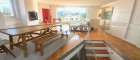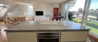 Die offene Küche, der Marke EWE mit Markengeräten, verfügt über ein Ceranfeld, Backrohr, Geschirrspüler, Dunstabzug, Mikrowelle, eine Kühlgefrierkombination, Kochinsel und Backrohr.