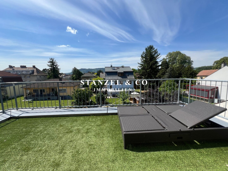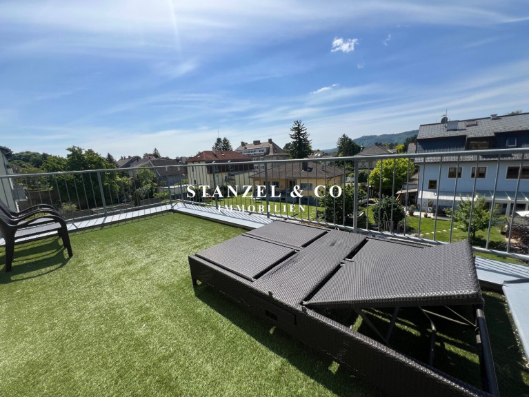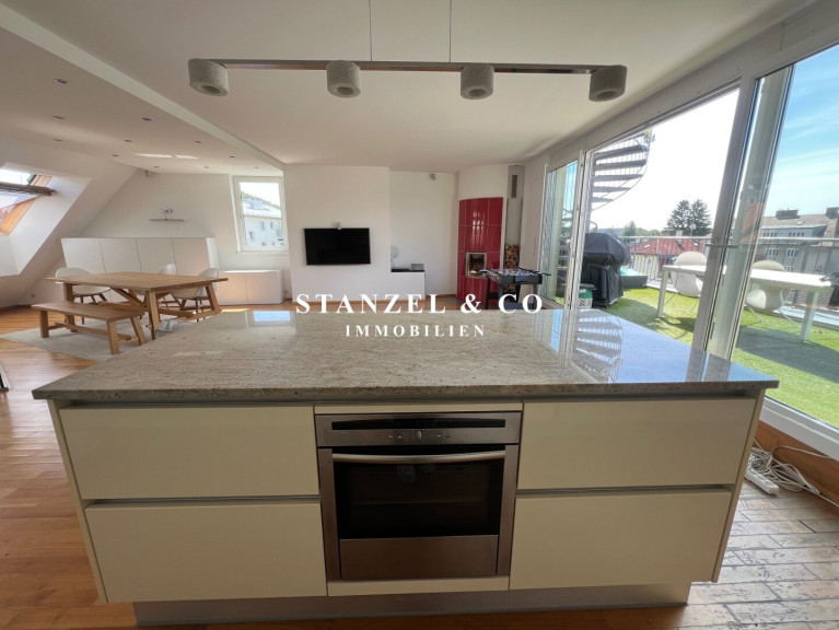 ( Vorzimmer, 2 Südwestbalkone, Dachterrasse, Wohnesszimmer, offene Küche, 2 Schlafzimmer, begehbare Garderobe, Badezimmer, 2 Abstellräume, Wirtschaftsraum, 2 WCs, Kellerabteil & PKW-Stellplatz )