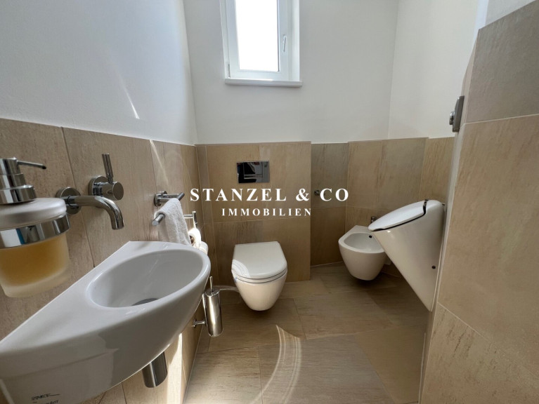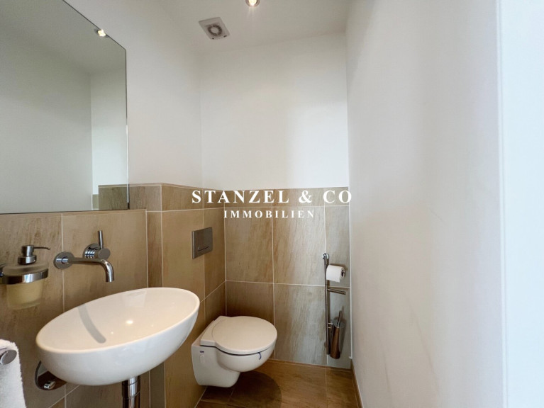 Des Weiteren gibt es einen Abstellraum sowie ein separates WC mit Waschbecken, Spiegel und elektrischer Entlüftung.