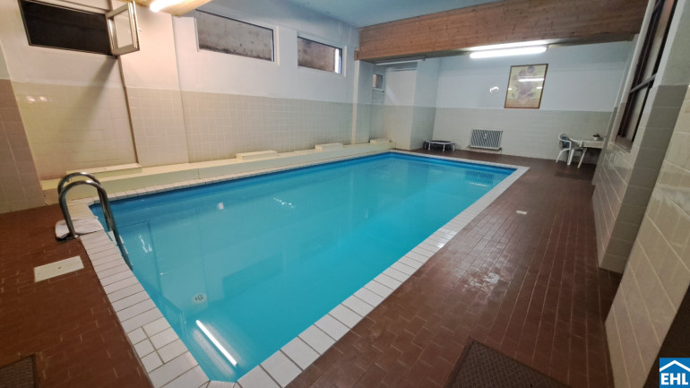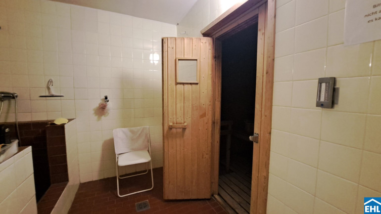 Parkett, Fliesen, Öl, Zentralheizung, Personenaufzug, Südbalkon, Bad mit Fenster, Dusche, Garage, Sauna, Swimmingpool