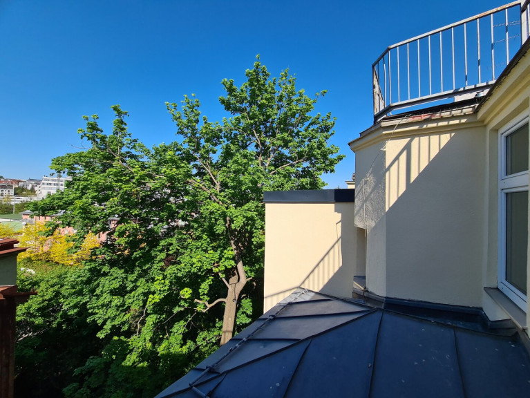 Die helle 1-Zimmer Dachgeschoßwohnung ist leicht trennbar um ein zweites Schlafkabinett/Zimmer zu bekommen und durch Ihre gute Aufteilung sowie mit möglichen Zugang zum begehbaren Flachdach bietet einen sehr angenehmen Lebensstil.