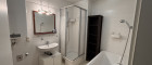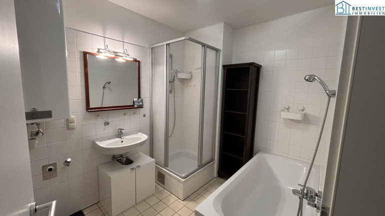 Das Badezimmer ist mit Badewanne und Dusche ausgestattet. Das WC selbstverständlich getrennt mit Fenster.