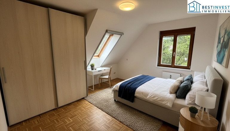 Toll ist auch der große Dachboden mit ca. 40m² den man vielseitig nutzen kann. In sämtliche Räume befinden sich hochwertigem Holzparkettboden.