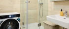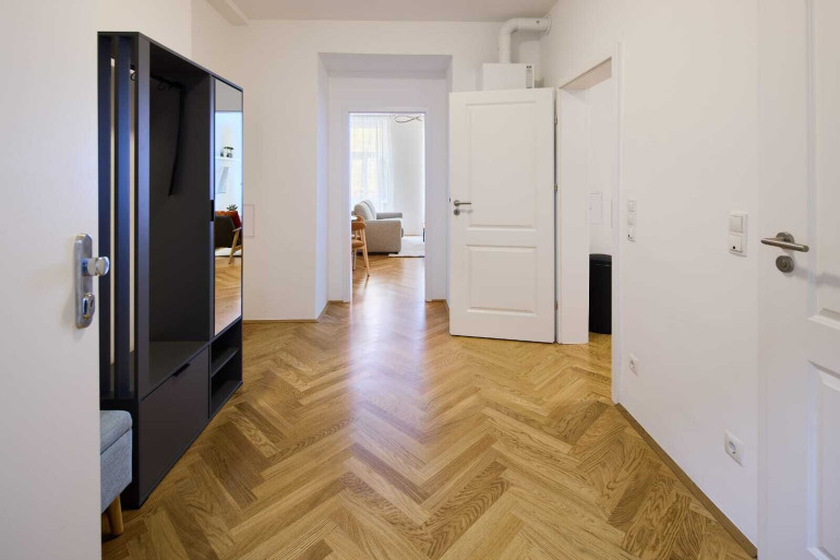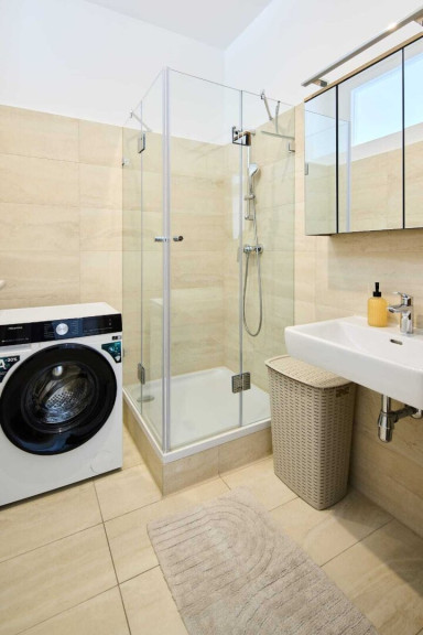 Die Wohnung ist ein Erstbezug und besticht durch hochwertige Ausstattungsmerkmale wie Parkettböden, eine Gaskombitherme für Heizung und Warmwasser und einen Aufzug, der Ihnen den Zugang erleichtert. Das hochwertige Badezimmer ist mit einer Dusche, einem Handtuchheizkörper, einem Waschmaschinenanschluss und einem Waschbecken ausgestattet, das WC ist separat und vom Vorraum begehbar.