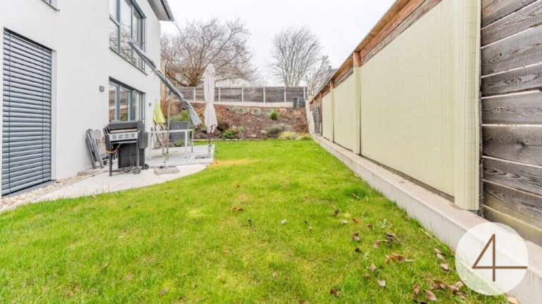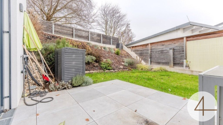 Die neuwertige Liegenschaft bietet: riesige Fensterfronten, Terrasse und Eigengarten und eine fast uneinsichtige Lage in einer Sackgasse.