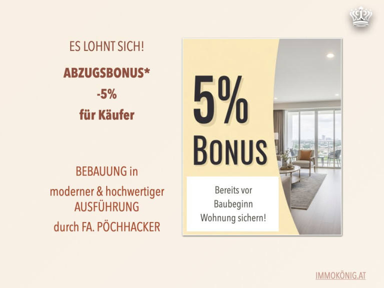 Frühkäuferbonus von -5% Abzug bereits beim Kaufpreis berücksichtigt. Bereits jetzt sichern!