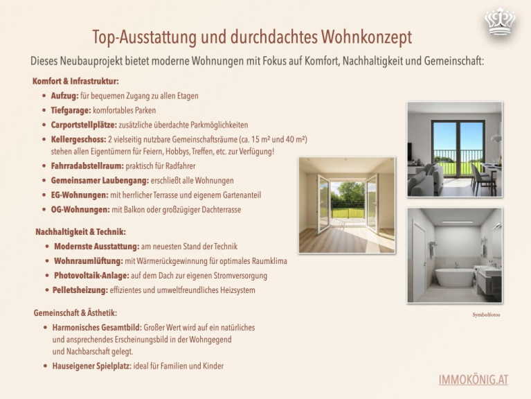 Dieses Neubauprojekt bietet moderne Wohnungen mit Fokus auf Komfort, Nachhaltigkeit und Gemeinschaft: