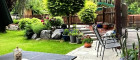 - Gepflasterter Teil des Gartens