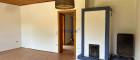 ein großes Wohn- und Esszimmer, ausgestattet mit einem Kachelofen