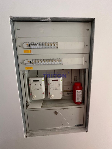 einen Abstellraum mit Elektrokasten und Wasserboiler