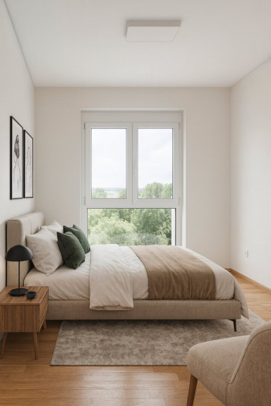 Die beiden Schlafräume sind gleich groß, wobei das rechte Zimmer als Master-Bedroom besticht – etwas großzügiger gestaltet. Der zweite Schlafraum eignet sich hervorragend als Büro, perfekt für Ihre Homeoffice-Anforderungen.