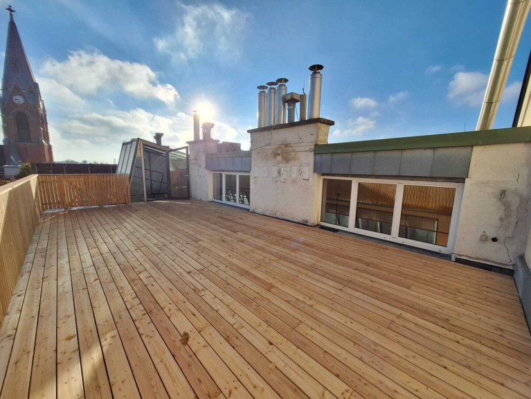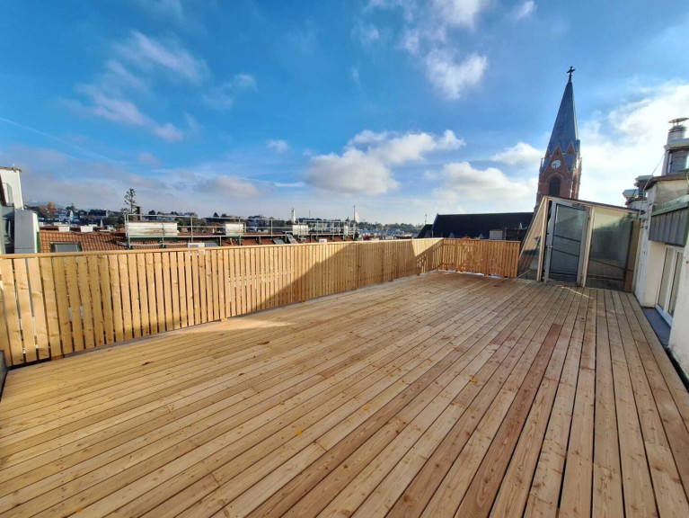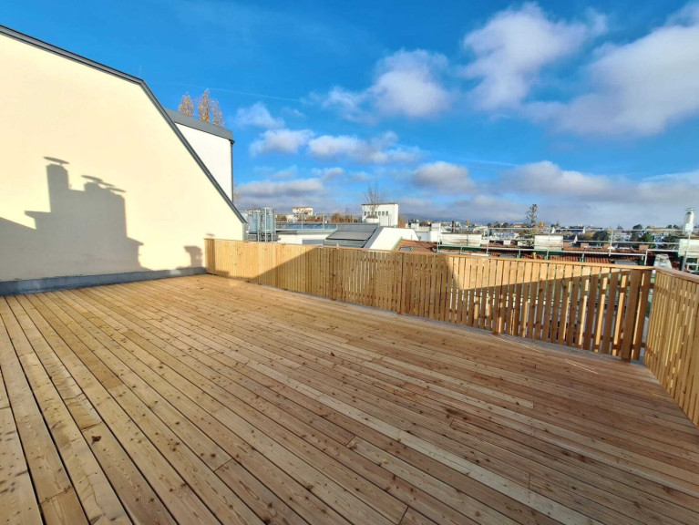 - Flachdachterrasse mit Fernblick (neue Holzeindeckung)