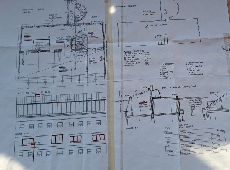 - Das Objekt ist derzeit in der 1. Ebene durch Glastrennwände in 5 Räume unterteilt, wurde ehemals als Architekturbüro genutzt undist teilweise renovierungsbedürftig.