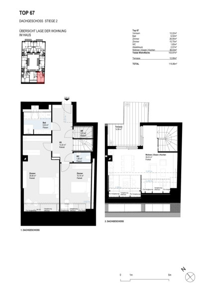 Diese charmante 3-Zimmer-Wohnung bietet Wohnkomfort auf höchstem Niveau und erstreckt sich über zwei Wohnebenen.