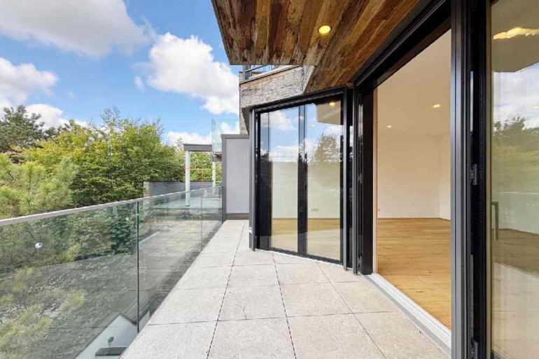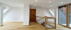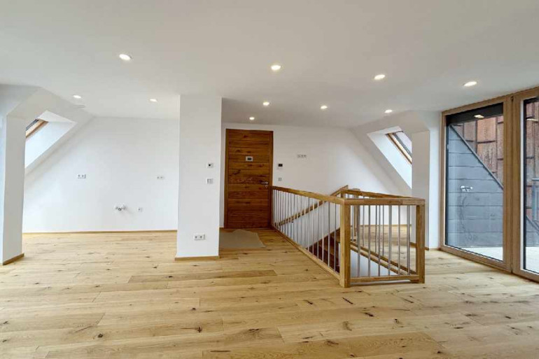 Über eine stilvolle Vollholz Eichentreppe gelangen Sie ins Obergeschoss. Dort öffnet sich der Raum – mit einer lichtdurchfluteten Galerie, einem Fitnessbereich und einem weiteren Badezimmer mit freistehender Badewanne. Auch auf dieser Ebene genießen Sie den Zugang zu weiteren Terrassen bzw. Loggien, was die Maisonette noch großzügiger und vielseitiger macht.