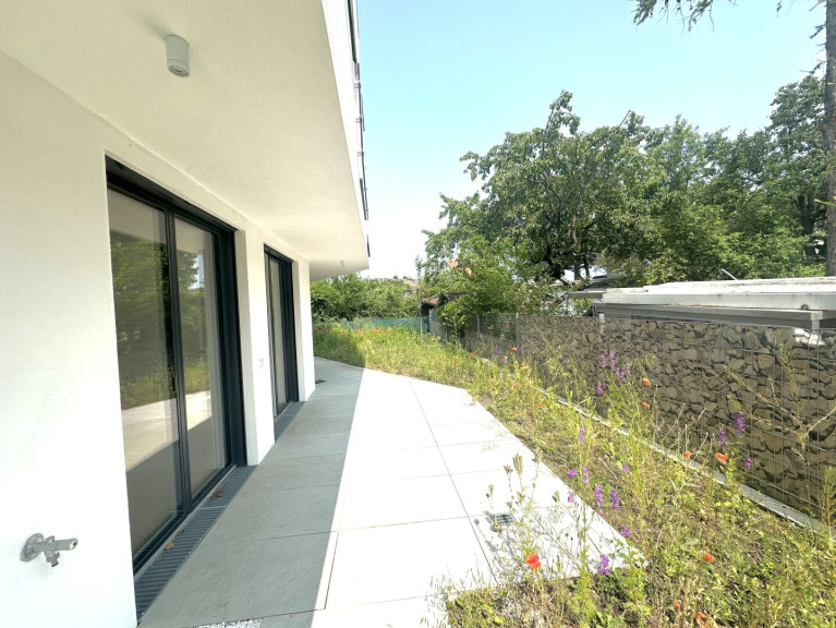 Die offene, gemütliche Wohnküche bildet das Herz der Wohnung – ein Ort, an dem gekocht, gelacht und gelebt wird. Zwei Schlafzimmer bieten Rückzug und Komfort, jedes mit direktem Zugang in den Garten. Das Licht begleitet einen den ganzen Tag, als würde das Draußen ständig ein Stück mit hineinwandern. Ein Traum, der sich bei jedem Schritt bestätigt.