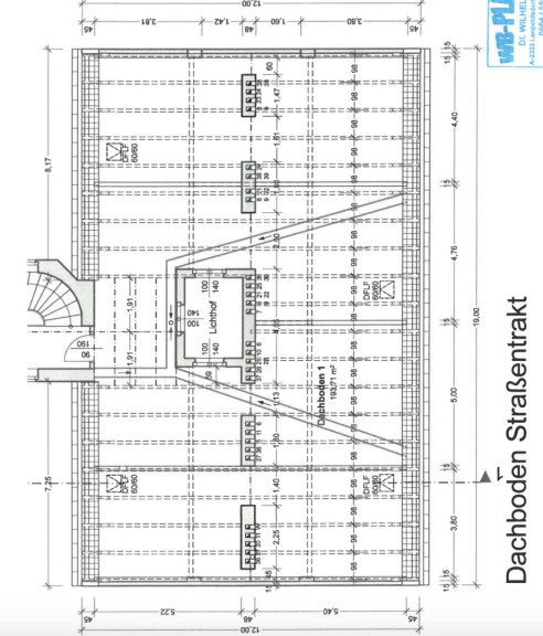 - Dachbodenfläche gemessen bis zur Mauerbank mit ca. 194m2;
