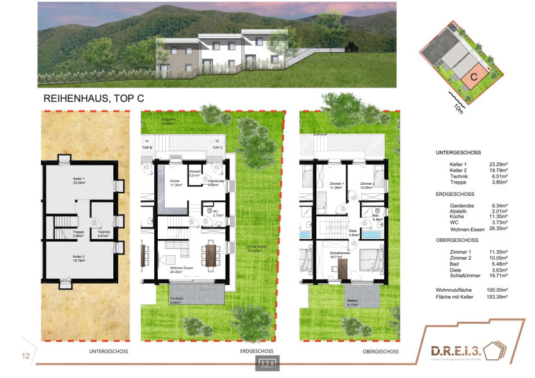In einer beliebten Wohngegend der Marktgemeinde Telfs einsteht das Projekt DREI, dreiexklusive Reihenhäuser. Sie werden genauso überwältigt sein von der Atmosphäre wie wir, egal ob Haus Top A, Haus Top B oder Haus Top C.