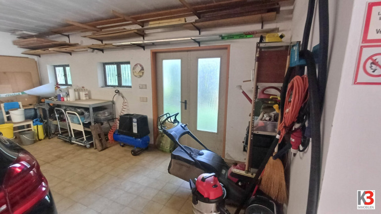 Drei Garagen mit elektrischen Antrieb, eine davon wurde sehr praktisch mit Werkstatt errichtet, mit Ausgang in den ostseitig gelegenen Garten , sowie ein Carport und zusätzlichen Parkmöglichkeiten.