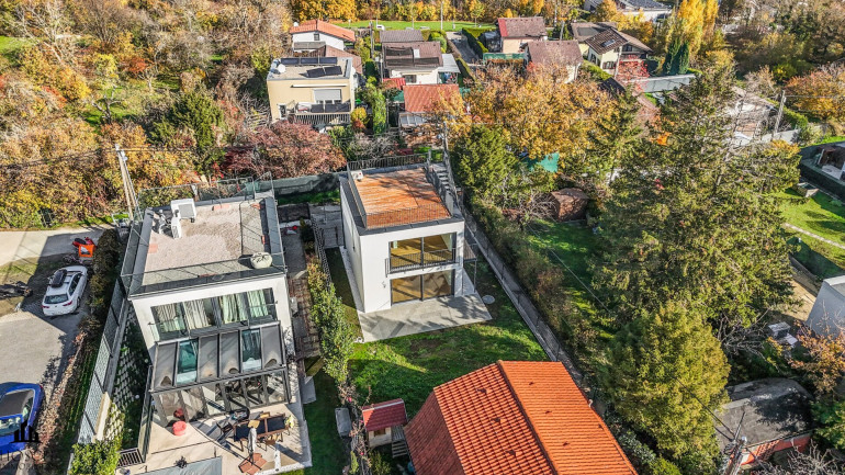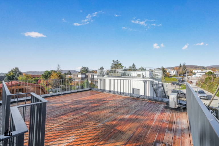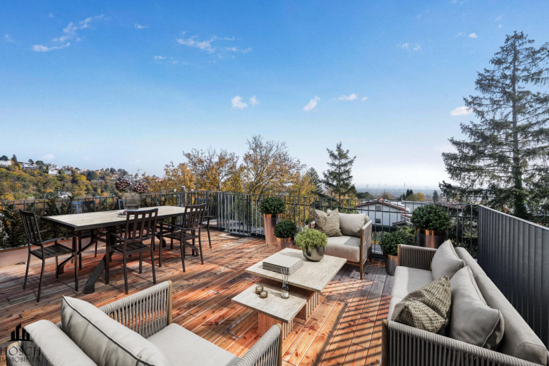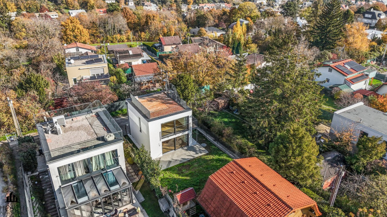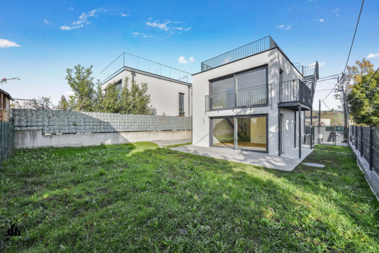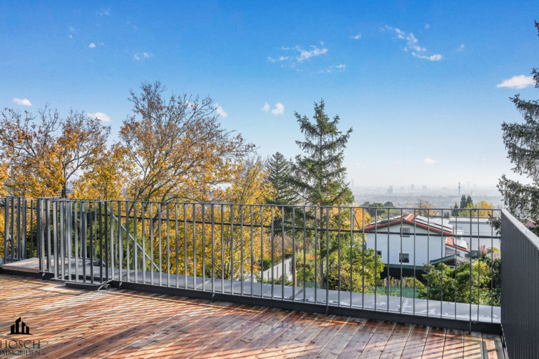 Den wunderschönen Garten inkl. Terrasse ergänzt ein Balkon im OG sowie die ca. 35,56 m² große Dachterrasse mit einem umwerfenden 360-Grad-Blick über Wien!