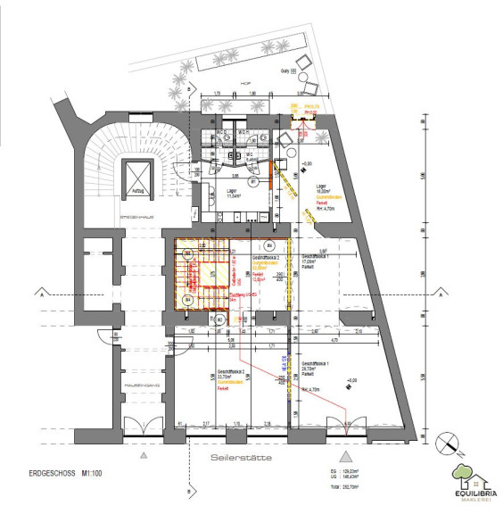 Die geplante Aufteilung der insgesamt 252,70 m² können Sie beigefügtem Plan entnehmen.