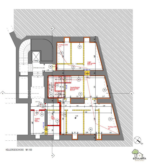 Das zur Vermietung gelangende Objekt verfügt über ca. 129 m² im Erdgeschoß (zuzüglich Innenhofgarten), mit großen Schaufenstern auf die Straße, sowie weiteren ca. 124 m² im Kellergeschoß.