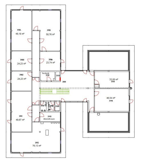 Ein Großteil der Räume hat einen direkten Ausgang ins Freie, ein Asset, das Ihre Mitarbeiter sicher sehr zu schätzen wissen.