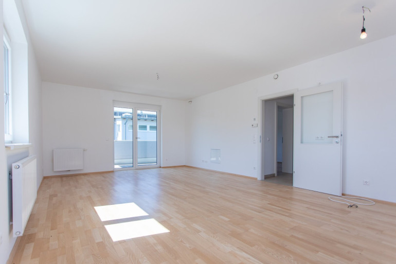 Der großzügige Wohn- und Essbereich mit direktem Zugang zum Balkon lädt zum Entspannen und Wohlfühlen ein. Auch vom Schlafzimmer aus genießen Sie den Ausblick auf Ihren eigenen Balkon.