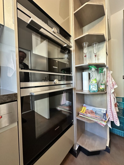 Beide Küchen präsentieren sich in modernem Design und überzeugen durch ihre erstklassige Ausstattung. Teile der Showküche sind mit elektrisch steuerbaren Elementen ausgestattet, die sich bequem per Fernbedienung bedienen lassen – ein besonderes technisches Highlight.