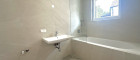 Badezimmer: Stilvoll ausgestattet mit hochwertigem Feinsteinzeug, einer Badewanne zum Entspannen und Fenster – für Tageslicht und frische Luft