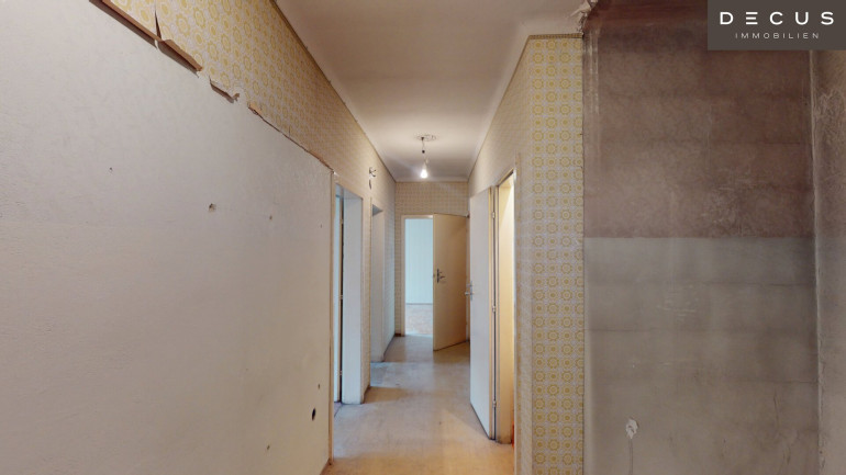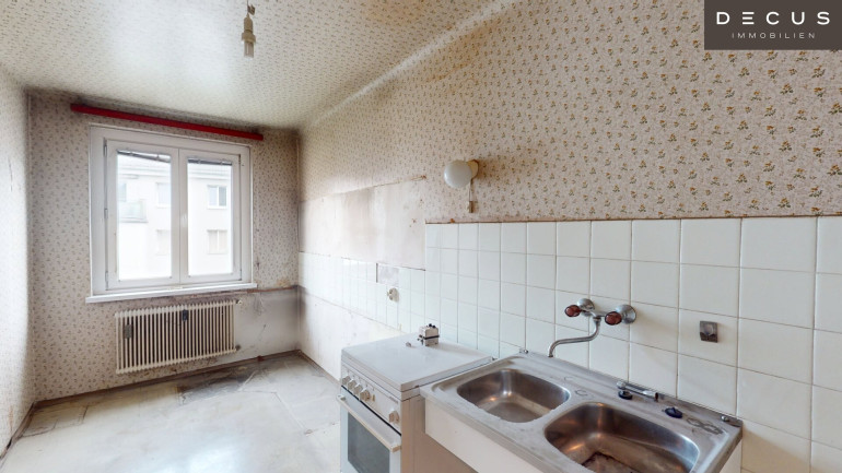 Diese westseitig-ausgerichtete, sinnvoll aufgeteilte 3-Zimmer-Wohnung mit ca. 76 m² Wohnfläche befindet sich in einem Gebäude aus den 1960er Jahren. Die Wohnung ist sanierungsbedürftig und bietet damit viel Potenzial zur individuellen Gestaltung.