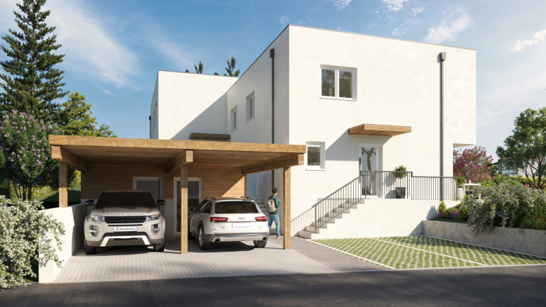 Bei der Planung wurde viel Wert auf ein maximum an Privatsphäre, schöne Architektur, durchdachte Grundrisse und modernen Wohnkomfort durch eine versetzte Bauweise gelegt.