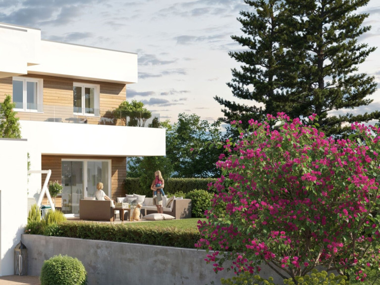 Die beiden Einheiten sind baulich durch eine Stützmauer getrennt, sodass jeder seinen Garten individuell gestalten und nutzen kann.