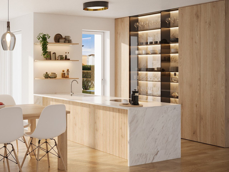 Die Einheiten werden innen hochwertig belagsfertig oder auf Wunsch schlüsselfertig ausgeführt, bei den Außenanlagen werden die Abstellflächen fertig asphaltiert, alle Stützmauern und Einfriedungen sowie eine Regenwasserzisterne für jede Einheit sind inkludiert.