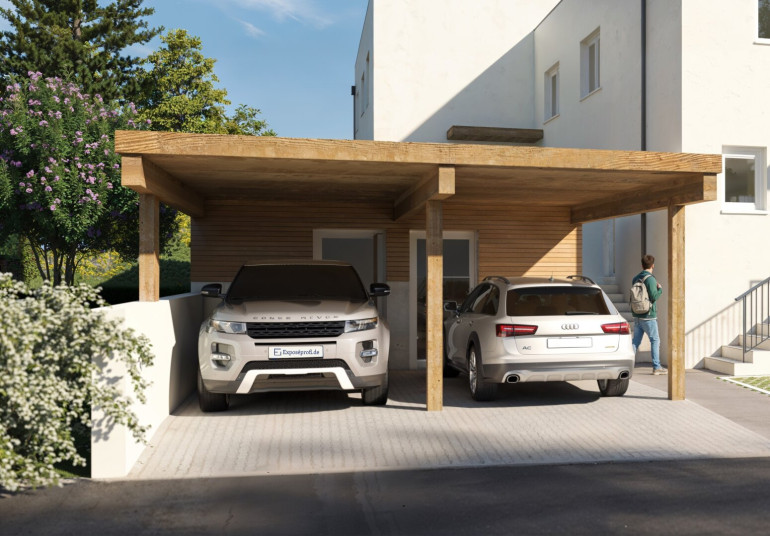 Zum Haus gehören ein Carport mit dahinter angebautem Abstellraum mit ca. 8 m² und ein PKW- Abstellplatz.