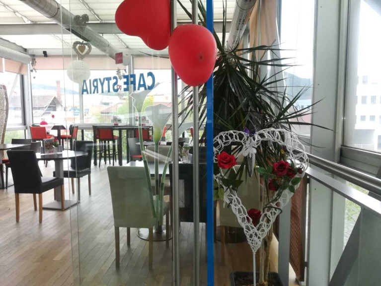 Die Terrasse lädt bei schönem Wetter dazu ein, die Gäste im Freien zu bewirten und damit das Café-Erlebnis zu verschönern.
