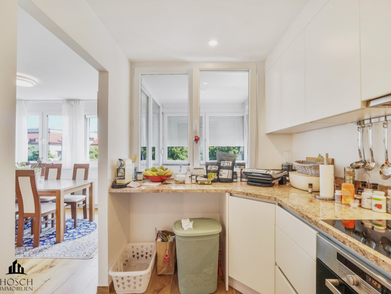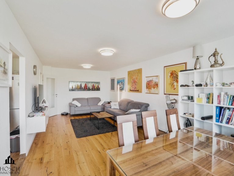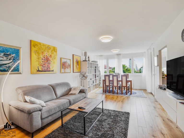 Die Wohnung befindet sich im 4. Liftstock eines sehr gepflegten Hauses und überzeugt durch ihre helle, freundliche Atmosphäre. Auf 71,95 m² bietet sie einen durchdachten Grundriss: ein großzügiger Wohnbereich mit Zugang zur Loggia, zwei ruhige Schlafzimmer, eine separate moderne Küche und ein Badezimmer mit Wanne.