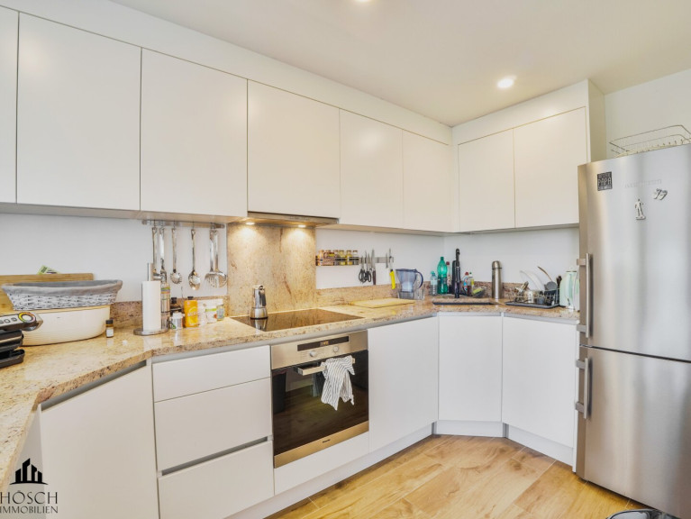 Hochwertiger Parkettboden und moderne Einbauküche inklusive