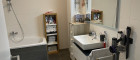 Ein weiteres Highlight ist das stilvolle und großzügige Badezimmer, das mit einer Badewanne ausgestattet ist – ideal für entspannende Momente nach einem langen Tag, auch für eine Dusche sind Anschlüsse hinter den Fliesen verlegt worden. Zudem ist die Wohnung dank des Personenaufzugs bequem erreichbar, was besonders für Familien und ältere Menschen von Vorteil ist.