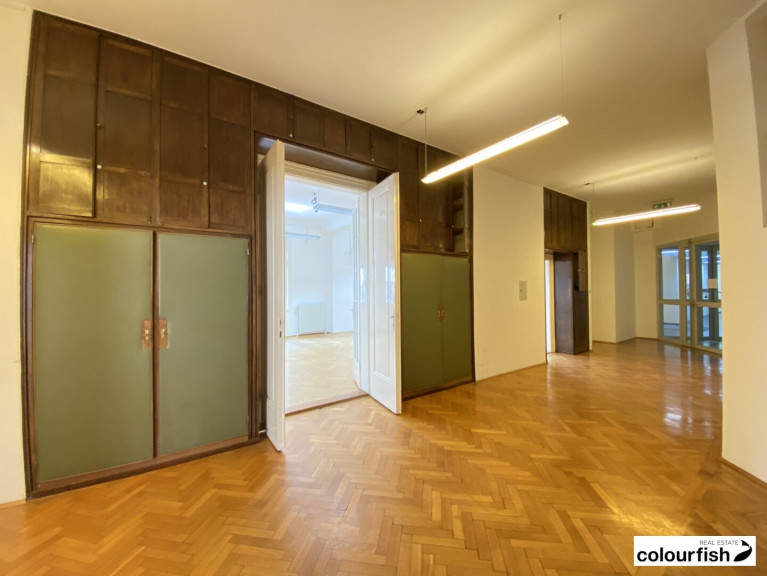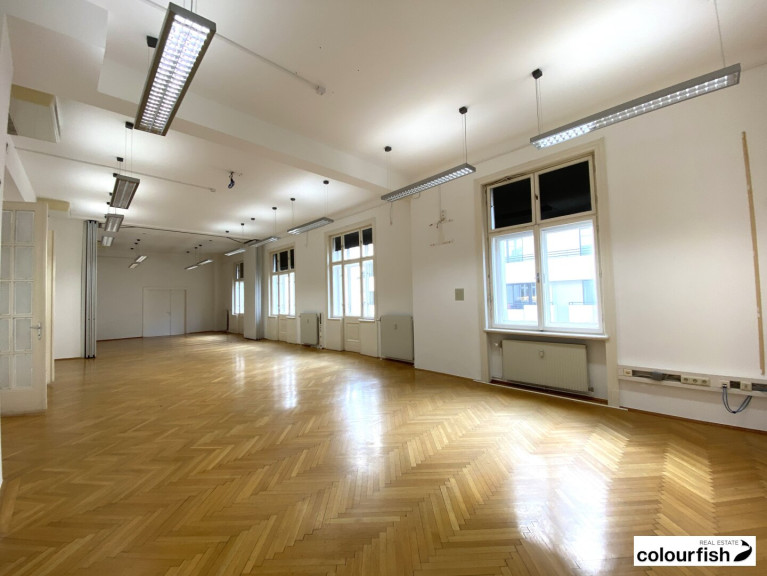 Im historischen Palais Fanto, direkt am Schwarzenbergplatz, gelangt ein attraktives Altbaubüro zur Vermietung. Die großzügig geschnittene Fläche befindet sich im 2. Obergeschoß und gliedert sich in einen Veranstaltungsbereich mit einem rund 100 m² großen Meetingraum im vorderen Teil sowie einen klassischen Bürobereich. Der Veranstaltungsraum kann mittels mobiler Trennwand in zwei separate Räume geteilt werden; direkt angrenzend befindet sich eine praktische Serviceküche.