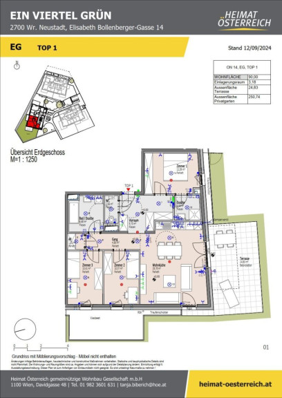 Erleben Sie urbanes Wohnen inmitten von grünen Freiräumen: Das Wohnprojekt "ein viertel grün" bietet modernen Wohnkomfort in perfekter Lage - direkt gegenüber der Merkurcity. Hier verbinden sich erstklassige Infrastruktur und eine ruhige, grüne Umgebung zu einem einzigartigen Lebensraum für Einzelpersonen, Paare und Familien. Sowohl das Stadtzentrum von Wiener Neustadt, der Bahnhof als auch die Autobahn A2 sind in wenigen Minuten erreichbar. Wiener Neustadt bietet neben zahlreichen Einkaufsmöglichkeiten auch einige Restaurants, Bistros, Cafés und Bars, die zum Verweilen einladen. Auch kulturell hat die Stadt einiges zu bieten - von monatlichen Veranstaltungen bis hin zu geschichtsträchtigen Sehenswürdigkeiten.