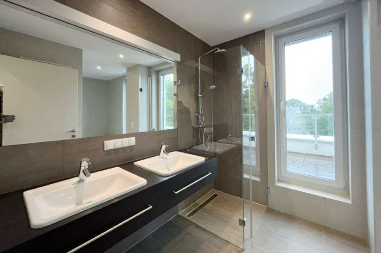 -) Bad mit Wc, Dusche, Wanne und Doppelwaschtisch