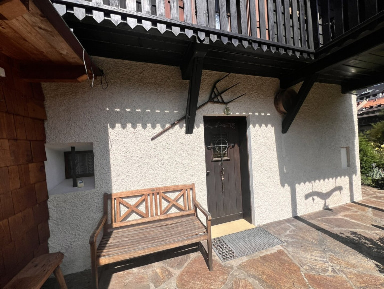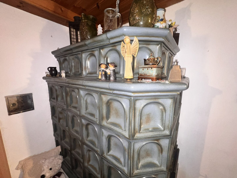 Über den ostseitigen Eingang gelangt man in den neu gestalteten Vorraum, ausgestattet mit moderner Fußbodenheizung. Im Wohnraum sorgt ein traditioneller Kachelofen für wohlige Wärme.