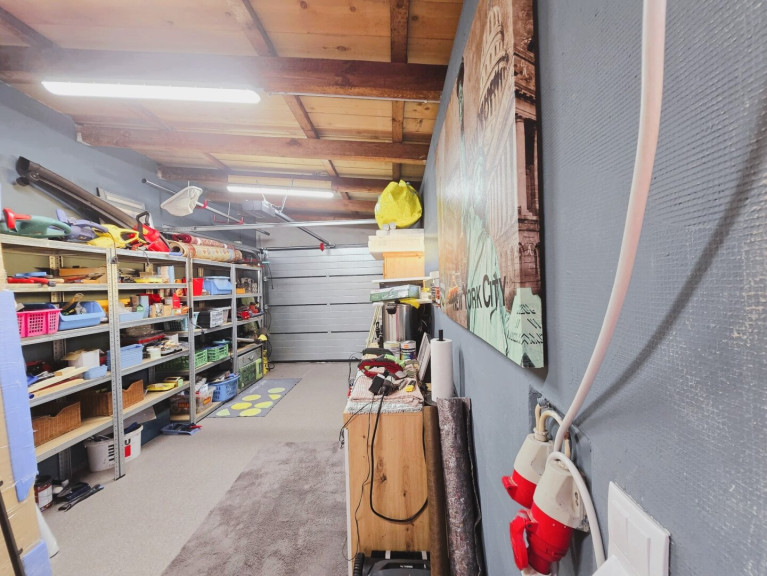 Zusätzlich zu den großzügigen Wohnräumen bietet dieses Haus auch praktische Annehmlichkeiten: Eine Garage sowie Stellplätze stehen Ihnen zur Verfügung, sodass Sie immer genügend Platz für Ihre Fahrzeuge haben. Ein Carport sorgt zudem für zusätzlichen Schutz vor Witterungseinflüssen.