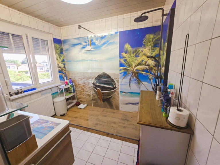 + Bad und WC, mit Dusche und Fenster ausgestattet, verfliest