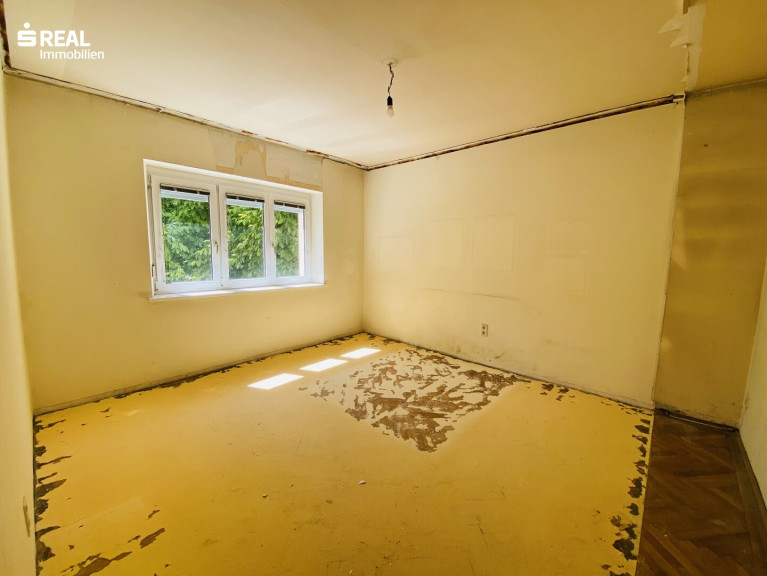 Wohnzimmer und Schlafzimmer sind mit Fischgrätparkett versehen.