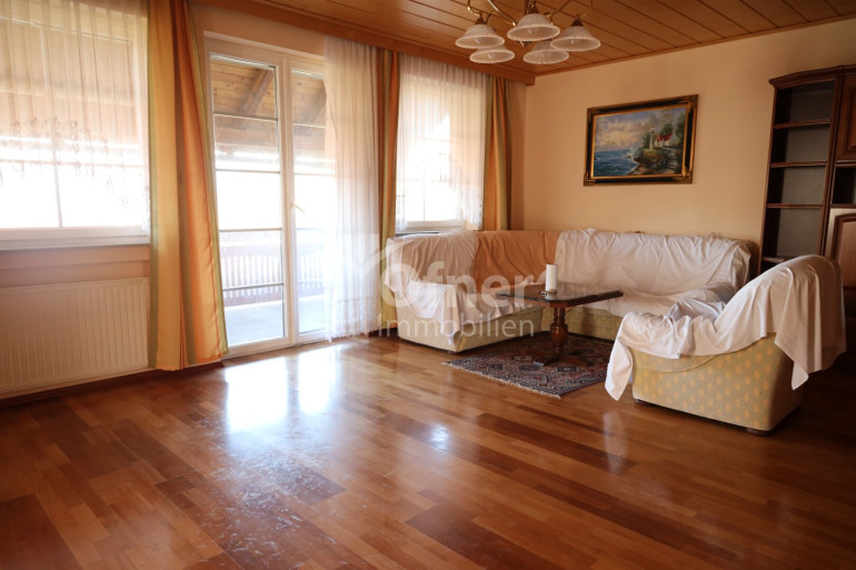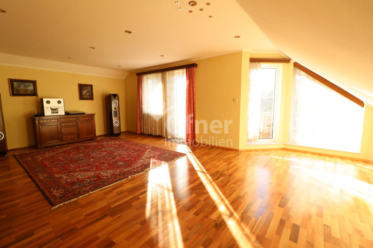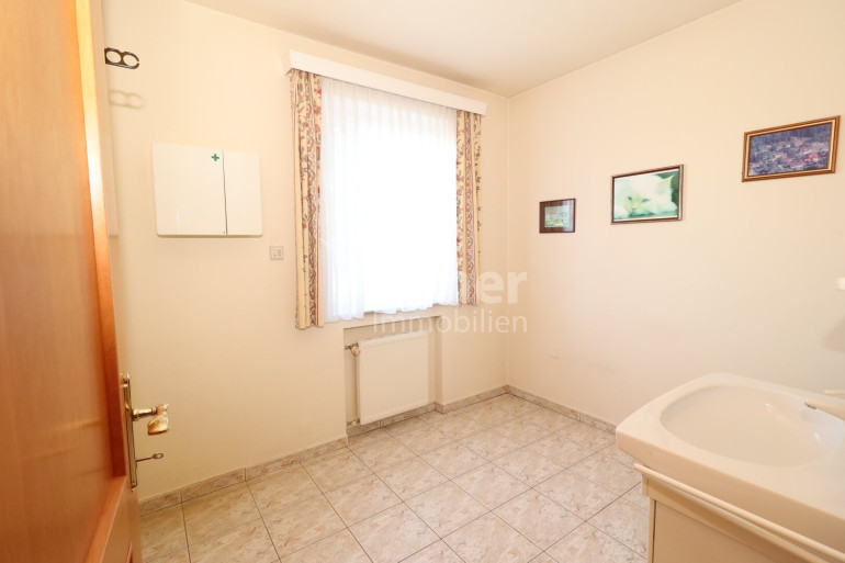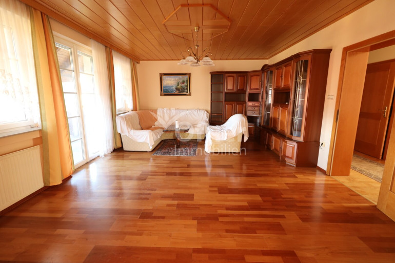 Das Wohnhaus bietet mehrere Zugänge: der Haupteingang im Erdgeschoß, die Garage im Kellergeschoß, oder über den Arbeits-/Fitness-/Wellnessraum im Keller kann das Wohnhaus betreten werden. Am Haupteingang befindet sich ein Windfang mit Garderobe, der in die Diele führt. Von hier aus erschließt sich das gesamte Erdgeschoß in: Wohnzimmer, Esszimmer, Küche, Speis, Badezimmer, Schlafzimmer, separates WC und Wirtschaftsraum. Alle Räume sind großzügig, hell und freundlich mit Parkettböden, Tischlermöbel, teilweise Holz-Deckenverkleidungen, Vollholztüren, und einer Marken Einbauküche ausgestattet. Das Wohnzimmer hat Zugang auf die überdachte Terrasse und den Garten mit herrlichem Weitblick auf die Almenlandschaft der Stubalpe.